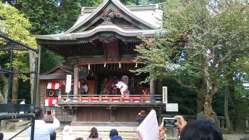 食後、すぐ近くの二荒山神社にお参りして(神楽?やってました)